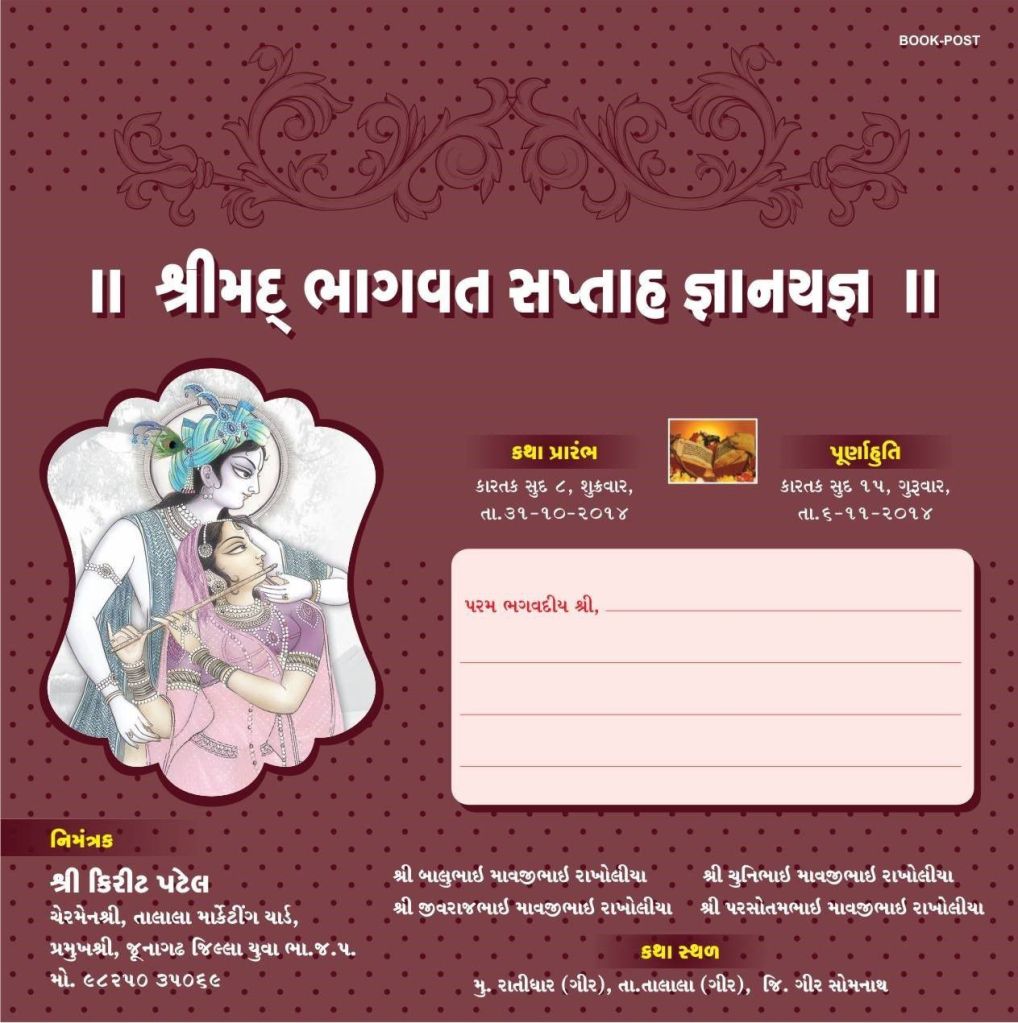 Posted in Talala વતન મા શ્રીમદ ભાગવત સપ્તાહ જેવા ધાર્મિક કાર્યોક્રમો નુ આયોજન Posted on October 31, 2014 by Sanjay Rathod પોતાના વતન મા શ્રીમદ ભાગવત સપ્તાહ જેવા ધાર્મિક કાર્યોક્રમો નુ આયોજન Share this: Share on WhatsApp (Opens in new window) WhatsApp Share on X (Opens in new window) X Share on Facebook (Opens in new window) Facebook Share on LinkedIn (Opens in new window) LinkedIn