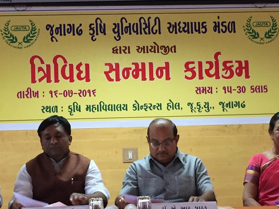 આજરોજ તારીખ ૧૬/૦૭/૨૦૧૬ ના રોજ જૂનાગઢ કૃષી યુનિવર્સિટી અધ્યાપક મંડળ દ્વારા આયોજીત વિદ્યાર્થી સન્માન સમારોહ, બેસ્ટ ટીચર એવોર્ડ અને કૃષિ વૈજ્ઞાનિક સમારંભ કાર્યક્રમમાં હાજરી આપી.
