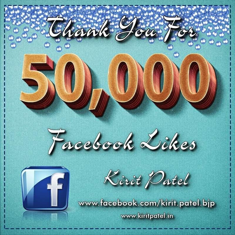 ફેસબુક પેઇજ પર 50,000 લાઇક્સ ના માઇલસ્ટોન સુધી પહોંચાડવા માટે સર્વે મિત્રો નો ખુબ ખુબ આભાર. – Kirit Patel
