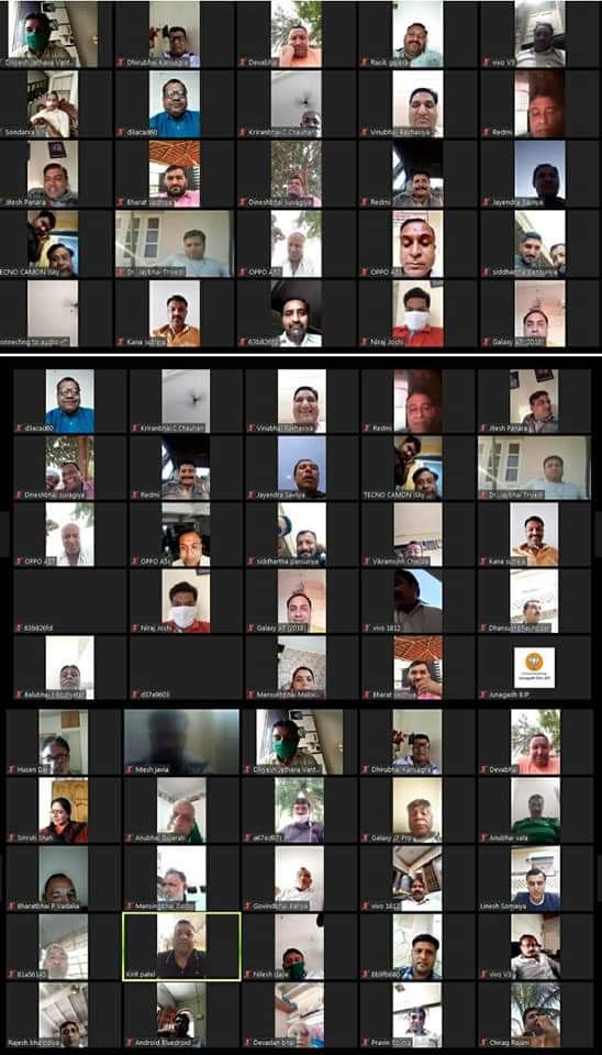 આજ રોજ જૂનાગઢ જિલ્લા ભાજપના હોદેદારશ્રીઓ અને મંડલ ના પ્રમુખ તથા મહામંત્રીશ્રીઓ સાથે ઓનલાઈન વિડીયો કોલ ના માધ્યમથી બેઠક મળેલ, જેમાં 66 આગેવાનો જોડાયેલ. અને તેમના વિસ્તારમાં થઇ રહેલ ભાજપની કામગીરી વિશે માહિતી આપેલ.