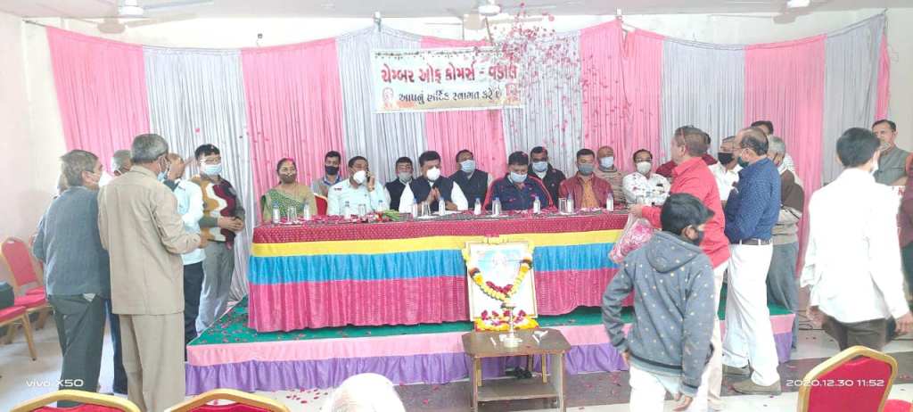 જૂનાગઢ તાલુકાના વડાલ ગામે ચેમ્બર ઓફ કોમર્સ – વડાલ દ્વારા આયોજિત સ્નેહમિલન કાર્યક્રમ માં ઉપસ્થિત રહેલ .