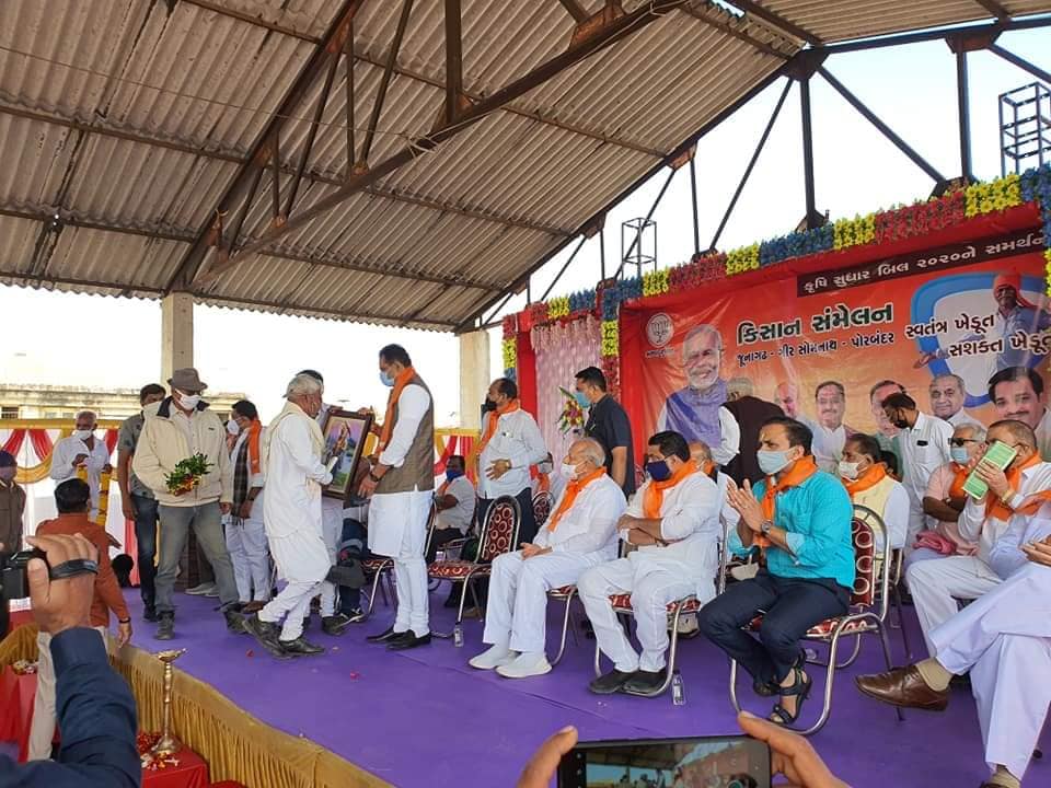 કૃષિ સુધાર કાયદા અંગે જન જાગરણ અભિયાન અંતર્ગત કેશોદ ખાતે યોજાયેલા ખેડૂત સંમેલનમાં જોડાઈ તે વિષય પર વિસ્તારપૂર્વક ચર્ચા કરી.