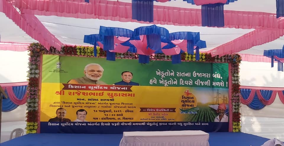 વિસાવદર તાલુકાના કાંકચિયાળા ગામે ખેડૂત ભાઈઓને દિવસે વીજળી આપતી ” કિસાન સૂર્યોદય યોજના ” અંતર્ગત તાલુકાના ગામોમાં યોજનાનો શુભારંભ કરવામાં આવેલ.