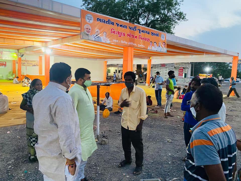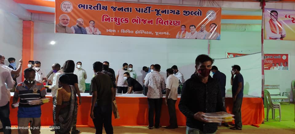 જૂનાગઢ સિવિલ હોસ્પિટલ ખાતે દર્દીઓના સ્નેહીજનો માટે જૂનાગઢ જીલ્લા ભાજપ દ્વારા ચાલુ કરેલ નિઃશુલ્ક ભોજન કેન્દ્ર ની નવનિયુક્ત સંગઠન પ્રભારીશ્રી ધવલભાઈ દવે એ મુલાકાત કરેલ.