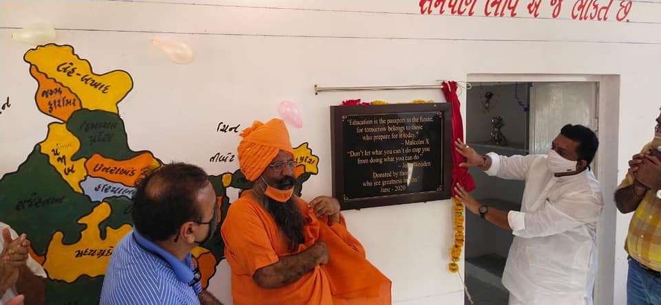 આજરોજ વિસાવદર તાલુકાના ખંભાળિયા ગામ માં મુક્તાનંદબાપુ ના વરદ હસ્તે પ્રાથમિક શાળા ના બિલ્ડીંગ નું લોકાર્પણ કાર્યક્રમ માં ઉપસ્થિત રહેલ .