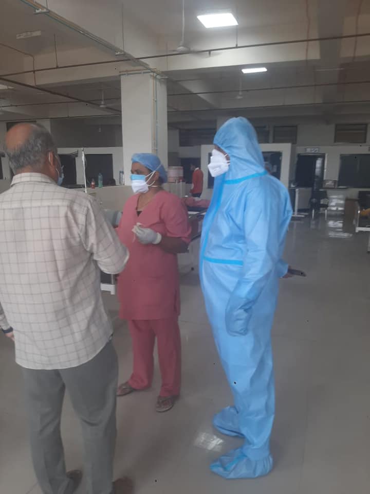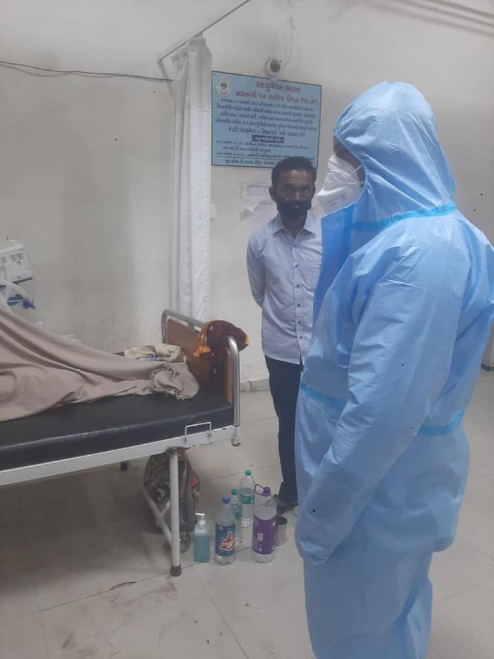 કોરોના મહામારી ની વચ્ચે જૂનાગઢ સિવિલ હોસ્પિટલમાં પીપીઈ કીટ પહેરીને કોવિડ વોર્ડ ની મુલાકાત લઈને ત્યાં સારવાર લઇ રહેલા દર્દીઓને વ્યક્તિગત મળીને ખબર અંતર જાણ્યા અને દર્દીઓને અપાતા ભોજન ની પણ ગુણવત્તા ની ચકાસણી કરીને, ઘટતી સુવિધાઓ તાકીદે અને સુવ્યવસ્થિત રીતે પૂર્ણ થાય તેવી સૂચના ફરજ પર હાજર ડોકટરો ને આપી.