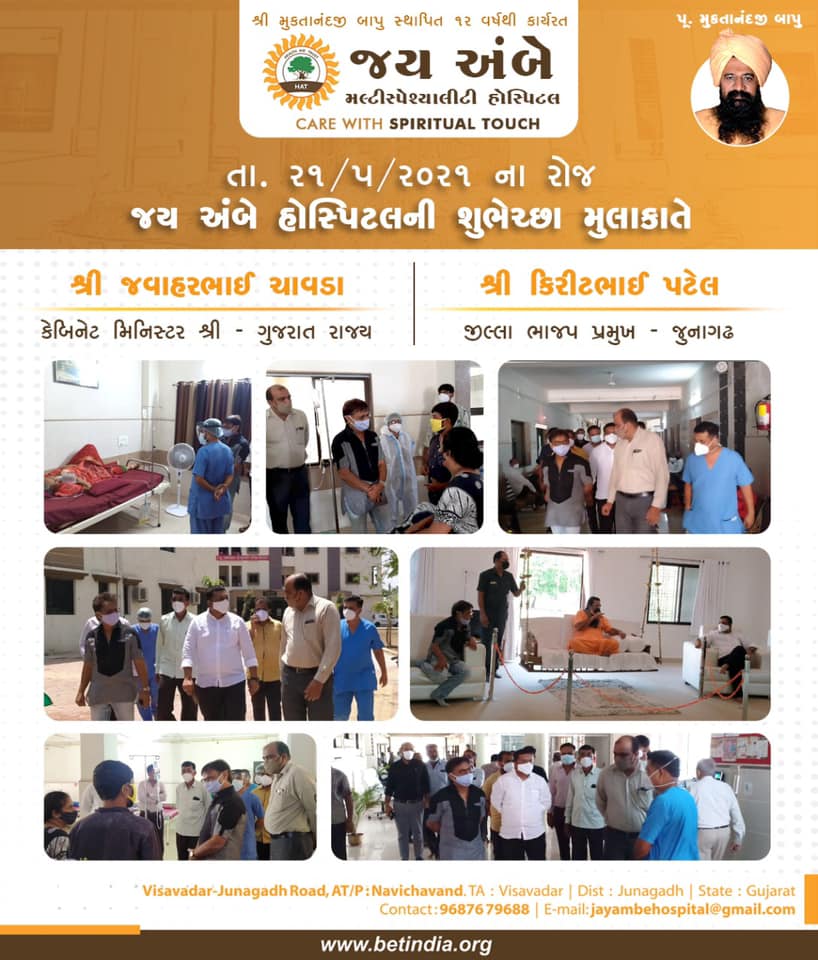 ગુજરાત સરકારના કેબિનેટ મંત્રી શ્રી જવાહરભાઈ ચાવડા સાથે ચાપરડાં ખાતે જયઅંબે હોસ્પિટલ ની મુલાકાત લઈ.