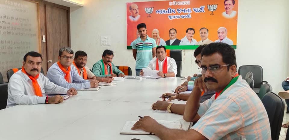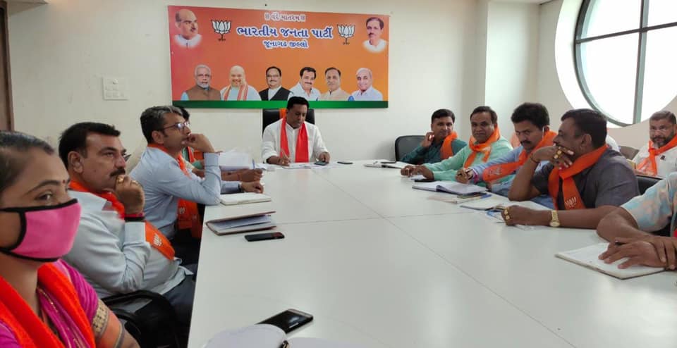જૂનાગઢ જીલ્લા ભા. જ. પ. કાર્યાલય “દીનદયાલ ભવન” ખાતે જૂનાગઢ મળેલી બેઠક માં જીલ્લાના તમામ હોદ્દેદારો ને સોપાયેલ કામગીરી અંગે સમીક્ષા કરવામાં આવી.