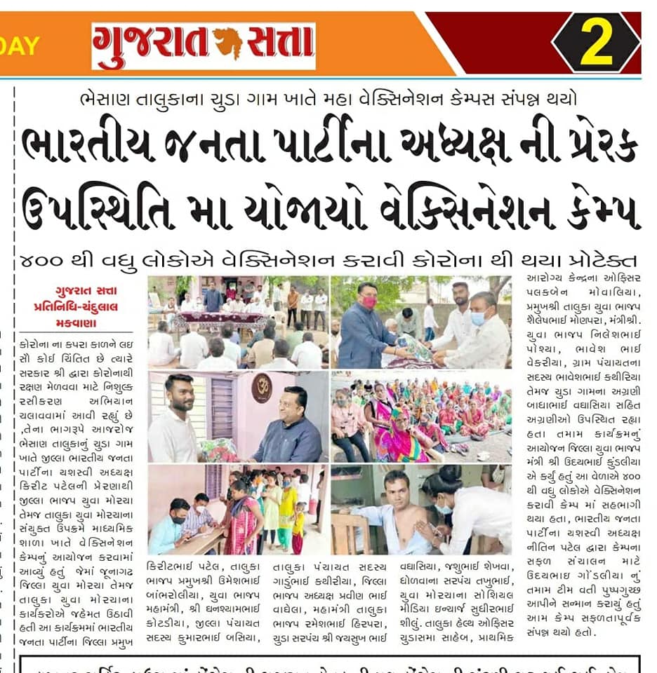 આજરોજ ૨૯.૦૭.૨૦૨૧ ના રોજ ભેસાણ તાલુકાના રાણપુર ગામે આવેલ હાઇસ્કુલ બિલ્ડિંગ ખાતે ગો.વા. વિઠ્ઠલભાઈ રાદડિયા ની દ્રિતીય વાર્ષિક પુણ્યતિથિ નિમિત્તે યોજાયેલ મેગા સર્વરોગ નિદાન કેમ્પ માં હાજરી આપી. આ કેમ્પ માં જય અંબે હોસ્પિટલ ચાપરડા અને રાણપુર ના વતની ડો.આકાશ કોરાટ સહિત ૧૮.જેટલા વિવિધ રોગના નિષ્ણાંત ડોકટરો ઊપસ્થિત રહી દર્દી નારાયણ ની સેવા રૂપી સારવાર કરી હતી. કેમ્પ માં સારવાર સાથે જરૂરી દવાઓ પણ નિશુલ્ક આપવામાં આવી હતી.