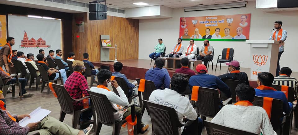 જુનાગઢ ભારતીય જનતા પાર્ટી જિલ્લા કાર્યાલય ખાતે જન આશીર્વાદ યાત્રા ૨૦૨૧ ના સફળ આયોજન અંગે જિલ્લા યુવા મોરચા અને કારોબારી ના સભ્યોની બેઠક મળી હતી,યાત્રાનું આગમન જૂનાગઢ જિલ્લાના માખીયાળા ખાતેથી સ્વાગત કાર્યક્રમ ને લઈને વિસાવદર ખાતે વેકરીયા સુધીના યાત્રાનું જરૂરી માર્ગદર્શન આપ્યું હતું