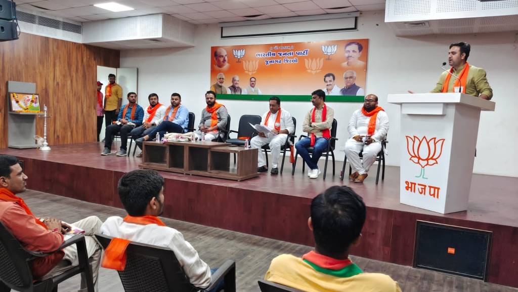 આજરોજ જૂનાગઢ જિલ્લા યુવા મોરચા ની કારોબારી બેઠક જિલ્લા ભાજપ કાર્યાલય ખાતે મળેલ, જેમાં ઉપસ્થિત રહી જિલ્લા યુવા મોરચાના યુવાનોને સંબોધિત કરીને પ્રોત્સાહિત કરેલ. બેઠક માં પ્રદેશ યુવા ભાજપ મહામંત્રી નરેશભાઈ દેસાઈ, જિલ્લા યુવા મોરચા ના પ્રભારી ઋષિભાઈ વેકરીયા, હાર્દિકભાઈ ડોડીયા ઉપસ્થિત રહેલ. જિલ્લા યુવા મોરચા ના પ્રમુખશ્રી અશોકભાઇ રાઠોડ, બંને મહામંત્રી શ્રી ઘનશ્યામભાઈ કોટડીયા અને મહેશભાઇ ભરાઈ ને સફળ આયોજન બદલ ખુબ ખુબ અભિનંદન.