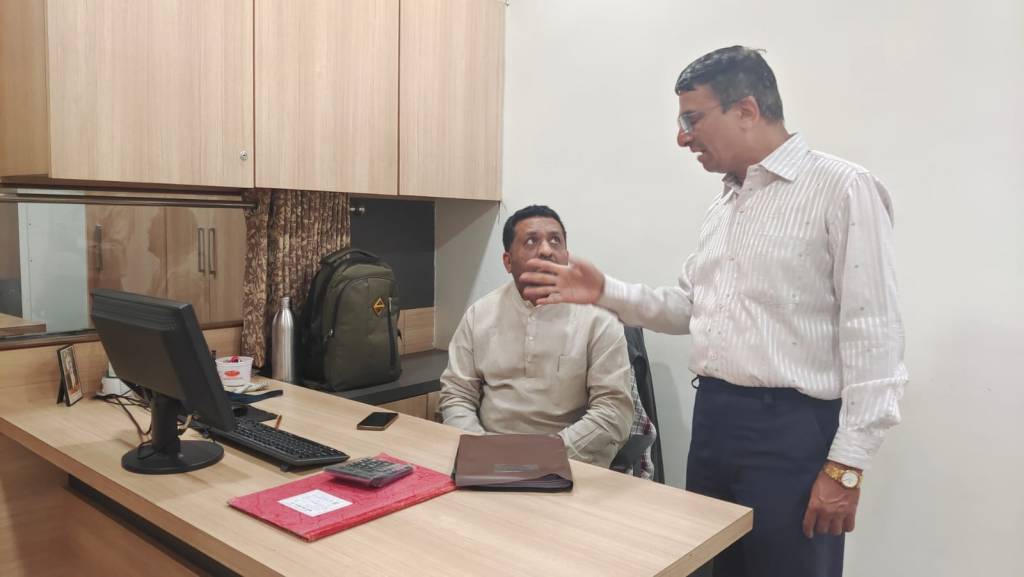 આજરોજ બગડુ સ્થિત વિઠ્ઠલેશ ઇન્ડસ્ટ્રીઝ ના દેવેન્દ્રભાઈ કાપડિયા સાથે જૂનાગઢ શહેરની એકલવ્ય સ્કુલના કેતનભાઇ શાહ, અને kids kingdom સ્કૂલના કલ્પેશભાઇ શાહે જૂનાગઢ ઓફિસ ખાતે શુભેચ્છા મુલાકાત કરી ધી.જૂનાગઢ જિલ્લા સહકારી બેંકના ચેરમેન તરીકે વરણી થતાં પુષ્પગુચ્છ આપી શુભેચ્છા પાઠવી જે બદલ એમનો આભાર વ્યક્ત કરું છું.