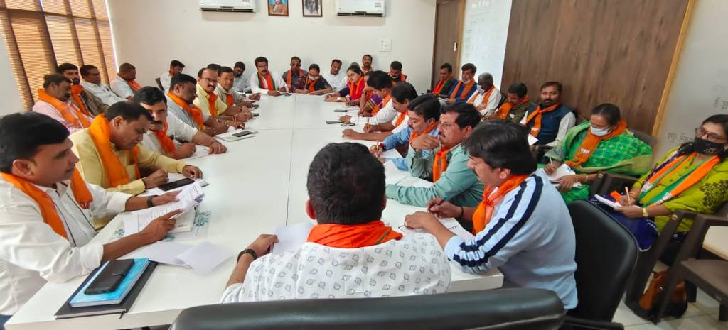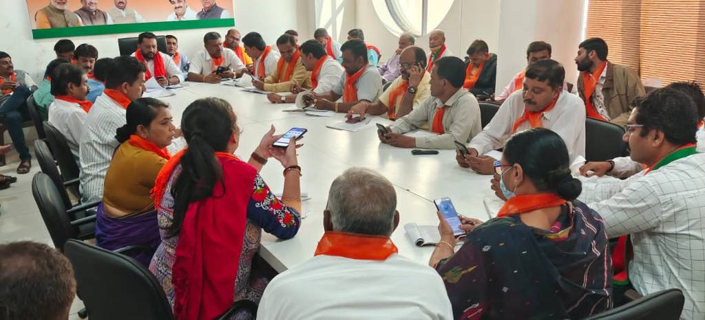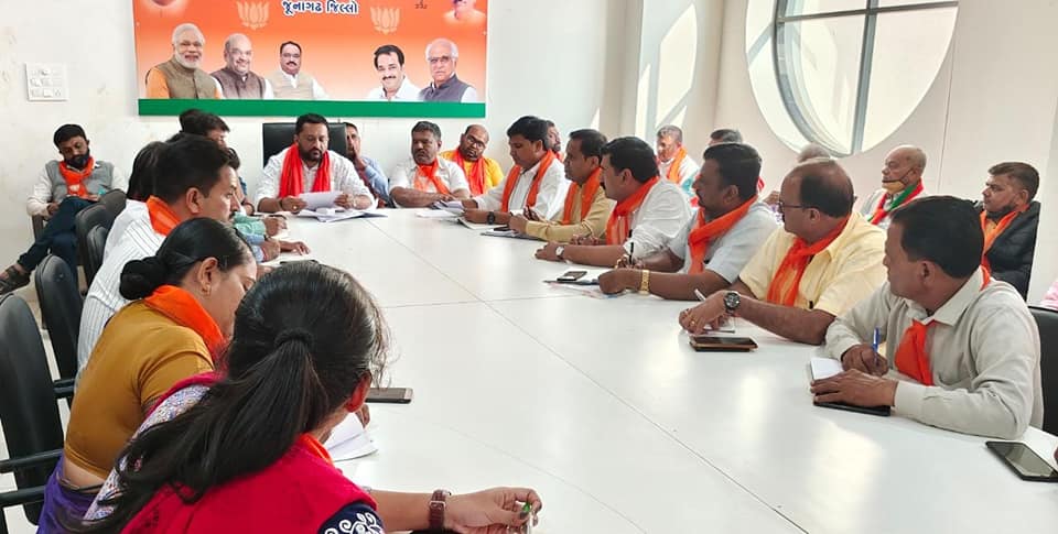 આજરોજ જૂનાગઢ જિલ્લા ભારતીય જનતા પાર્ટી કાર્યાલય ” પંડીત દીનદયાલ ભવન ” ખાતે આગામી કાર્યક્રમ ને લઇ જીલ્લા હોદેદારો ની બેઠક મળી જેમાં હાજરી આપી સંગઠન ને વધુ મજબૂત બનાવવાની સાથે પાર્ટી દ્વારા આવનારા દિવસોમાં યોજાનાર કાર્યક્રમ અંતર્ગત તૈયારીઓ અંગે વિસ્તૃત માહિતી આપી.