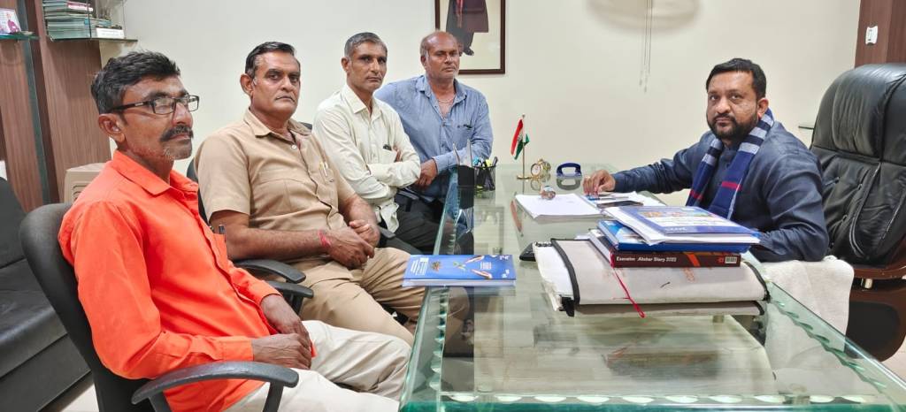 આજરોજ જૂનાગઢ જિલ્લા ભારતીય જનતા પાર્ટી કાર્યાલય ” *પંડીત દીનદયાલ ભવન* ” ખાતે ભારતીય જનતા પાર્ટી પ્રેરિત પ્લાસ્વા ગામના નવ નિયુક્ત સરપંચ ભરતભાઈ સિદપરા,દિનશભાઈ ગોંડલીયા, કેતનભાઈ કાપડિયા અને ગામના આગેવાન સાથે શુભેચ્છા મુલાકાત કરી