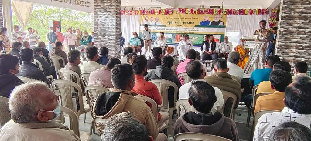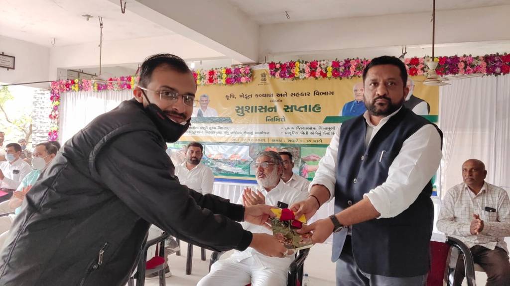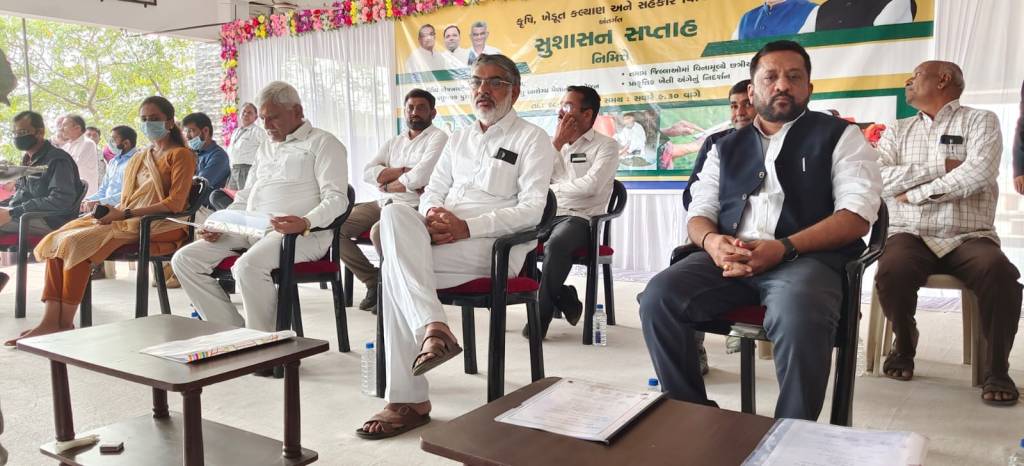 આજરોજ ભેસાણ તાલુકાના રાણપુર ગામ ખાતે કૃષિ,ખેડૂત કલ્યાણ અને સહકાર વિભાગ અંતર્ગત સુશાસન સપ્તાહ નિમિત્તે ખેડૂત લક્ષી માર્ગદર્શન શિબિર તેમજ પ્રદર્શની યોજાઈ જેમાં ગુજરાતસરકારના પુર્વમંત્રી અને ગુજરાત ગ્રામ નિર્માણ બોર્ડના ચેરમેન મુળુભાઇ બેરા સાથે હાજરી આપી.