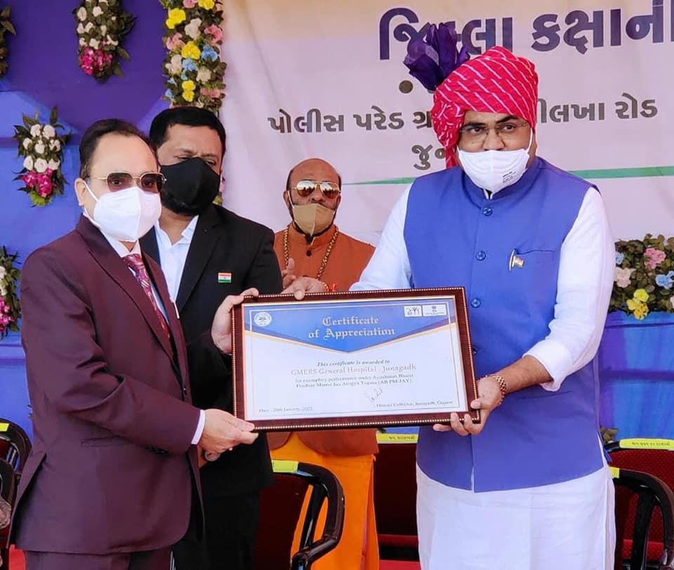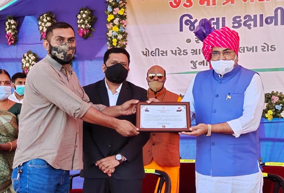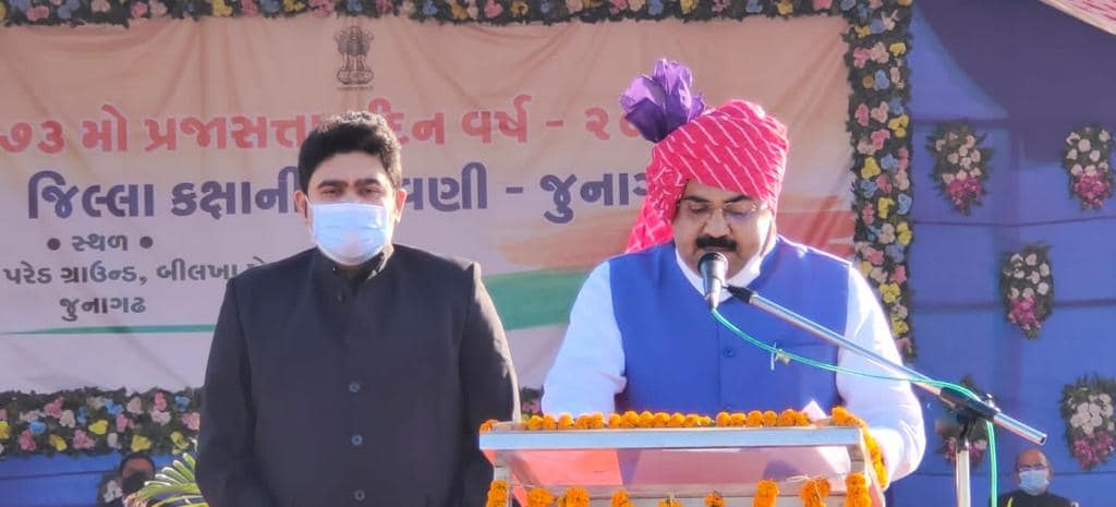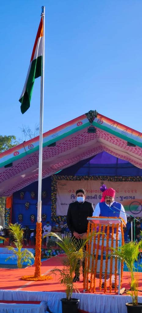 આજરોજ જૂનાગઢ ખાતે ૨૬ જાન્યુઆરી પ્રજાસત્તાક દિનની જિલ્લા કક્ષાની ઉજવણી અંતર્ગત બિલખા રોડ સ્થિત પોલીસ પરેડ ગ્રાઉન્ડ ખાતે વાહનવ્યહાર, નાગરિક ઉડ્ડયન પ્રવાસન અને યાત્રાધામ વિકાસ રાજય મંત્રી શ્રી અરવિંદભાઈ રૈયાણીના હસ્તે ધ્વજવંદન ત્યાર બાદ પરેડનું નિરિક્ષણ અને પ્રાસંગિક ઉદબોધન સાથે કોરોના વોરિયર્સ નું સન્માન કરવામાં આવ્યું જે વેળાએ ઊપસ્થિત રહેવાનો અવસર પ્રાપ્ત થયો.