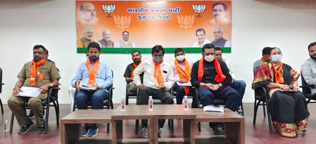 આજરોજ જૂનાગઢ ભારતીય જનતા પાર્ટી કાર્યાલય પંડીત દીનદયાલ ભવન ખાતે જિલ્લાના તમામ મોરચાના પદાધિકારીઓ અને ટીમ મેમ્બર્સની બેઠક મળી હતી,જેમાં ઉપસ્થિત રહી.પાર્ટી દ્વાર સૂચવેલા કાર્યોને સત્વરે પૂર્ણ કરવાની સાથે સંગઠન ના માળખાને વધુ મજબૂત કરવા માટેની સૂચના આપવામાં આવી.