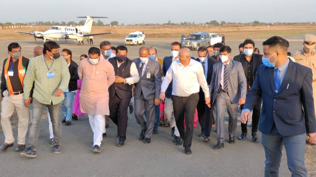 ગીર સોમનાથ જિલ્લામાં ૨૬ જાન્યુઆરી પ્રજાસત્તાક દિનની રાજ્ય કક્ષાની ઉજવણી અંતર્ગત આજરોજ કેશોદ ખાતે પધારતા ગુજરાતના મુખ્ય મંત્રી શ્રી ભુપેન્દ્રભાઈ પટેલનું કેશોદ એરપોર્ટ ખાતે ઉષ્માભેર સ્વાગત કર્યું.