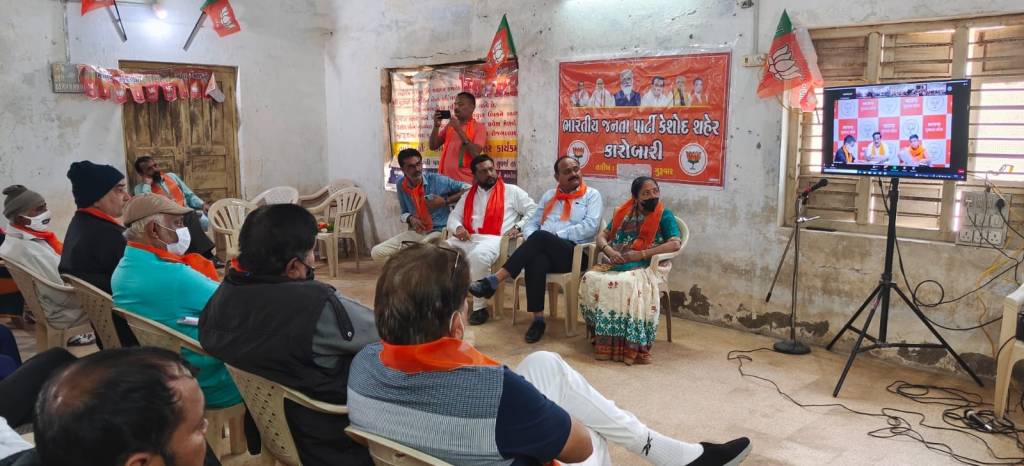 પ્રદેશ અધ્યક્ષશ્રી.સી.આર પાટીલ સાહેબ દ્વારા કમલમ ખાતેથી સંગઠનના હોદ્દેદારો ને માહિતી આપવા ઓન લાઇન વર્ચ્યુલ બેઠક નું આયોજન કરેલ જેના ભાગરૂપે આજરોજ ભારતીય જનતા પાર્ટી કેશોદ શહેર ની કારોબારી મળી,જેમાં હાજરી આપી સંગઠન ને વધુ મજબૂત બનાવવાની સાથે પાર્ટી દ્વારા સૂચવેલા કાર્યોને ને સત્વરે પૂર્ણ કરવાની સાથે જરૂરી માર્ગદર્શન આપેલ.