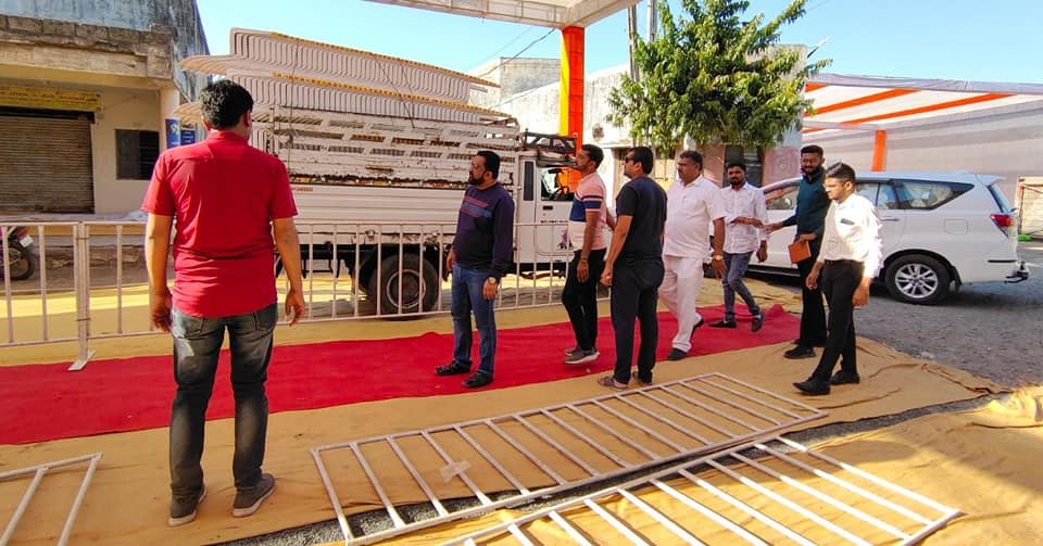 આવતીકાલે તાલાલા માર્કેટિંગ યાર્ડ ખાતે યોજાનાર ત્રિવિધ કાર્યક્રમમાં ગુજરાત પ્રદેશ ભાજપ પ્રમુખ શ્રી સી. આર. પાટીલ સાહેબની ઉપસ્થિતિમાં યોજાનાર “મહા ખેડૂત શિબિર” શ્રી સરદાર વલ્લભભાઈ પટેલની પ્રતિમાનું અનાવરણ અને ખેડૂતલક્ષી માર્ગદર્શન સાથે કૃષિમેળા ના કાર્યક્રમને લઈ તાલાલા માર્કેટિંગ યાર્ડ ખાતે થતી તમામ તૈયારીઓનું જાત નિરીક્ષણ કરી જરૂરી માર્ગદર્શન આપેલ.