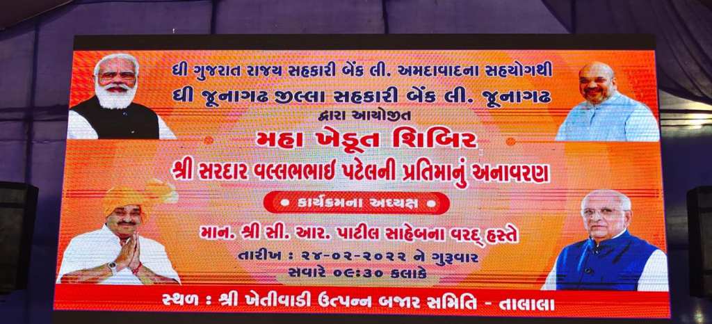 તાલાલા માર્કેટિંગ યાર્ડ ખાતે આવતીકાલે 24 ફેબ્રુઆરીના યોજાનાર “મહા ખેડૂત શિબિર” માં ગુજરાત પ્રદેશ ભાજપ પ્રમુખ શ્રી સી. આર. પાટીલ સાહેબની ઉપસ્થિતિમાં યોજાનાર હોય જેને લઇ તમામ તૈયારીઓ ને આખરી ઓપ આપ્યો.