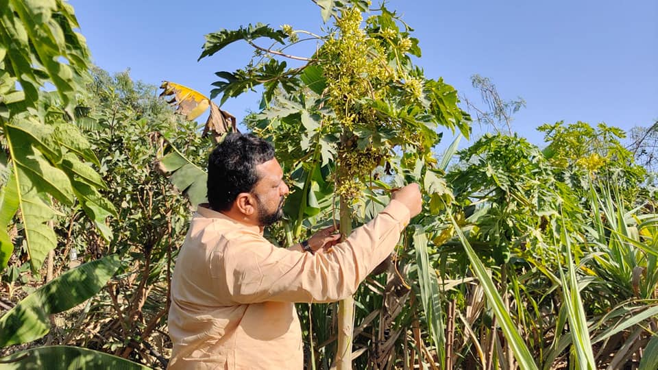 આજરોજ પ્રવાસ દરમ્યાન જૂનાગઢ તાલુકાના વડાલ ખાતે શાકભાજી અને ફળો ની “ઓર્ગેનિક” પ્રાકૃતિક રીતે ખેતી કરતા હિતેશભાઈ દોમડીયાની વાડીની મુલાકાત લીધી જેમાં પપૈયા, દાડમ, સેરડી, મોસંબી, સાથે વિવિધ શાકભાજી ના ઉભા પાકનું જાત નીરક્ષણ કર્યું. ખરા અર્થમાં કહીએ તો આપણા બધાના સ્વાસ્થ્ય માટે આવનારા સમયમાં આ પ્રાકૃતિક ખેતી ખૂબજ ઉપયોગી નીવડશે.