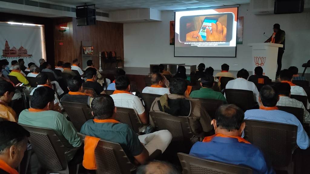 આજરોજ જૂનાગઢ જિલ્લા ભારતીય જનતા પાર્ટી જીલ્લા કાર્યાલય “પંડિત દિનદયાલ ભવન” ખાતે પાર્ટીના ડેટા મેનેજમેન્ટ કાર્યક્ર્મ અંતર્ગત વર્કશોપ (કાર્યશાળા)નું આયોજન કરવામાં આવ્યું જેમાં ડેટા મેનેજમેન્ટ પ્રદેશ કન્વીનર મહેશભાઈ મોદી,સૌરાષ્ટ્ર ઝોન ઇન્ચાર્જ જયભાઈ શાહ સાથે જિલ્લા/મહાનગરના અપેક્ષિત કાર્યકર્તાઓ સાથે ઉપસ્થીત રહેલ જેમાં ડેટા મેનેજમેન્ટ કાર્યક્ર્મ અંતર્ગત જરૂરી માર્ગદર્શન આપેલ.