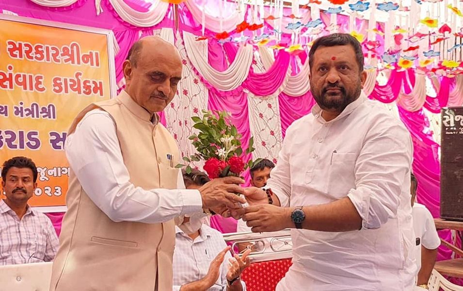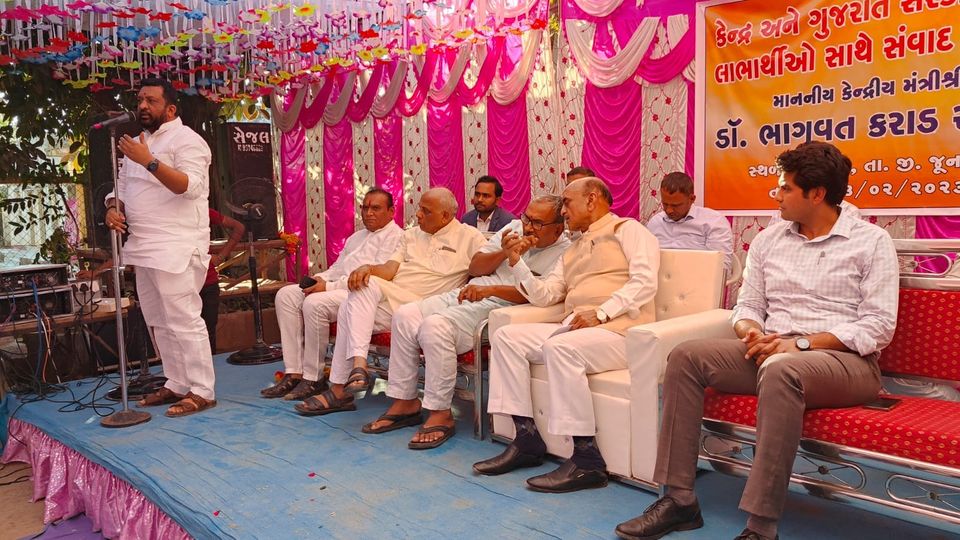 આજરોજ જુનાગઢ ના ડુંગરપુર ગામે પશુ- પક્ષી, પ્રાણી કલ્યાણ મંડળ ખાતે કેન્દ્રીય રાજ્ય નાણાં મંત્રી શ્રી ડો.ભાગવત કરાડ ના અધ્યક્ષ સ્થાને કેન્દ્ર અને ગુજરાત સરકારશ્રીના લાભાર્થીઓ સાથે સંવાદ કાર્યક્રમ યોજાયો જેમાં હાજર રહીને કેન્દ્ર અને રાજ્ય સરકારશ્રીની વિવિધ કલ્યાણકારી યોજનાઓ અંગે લાભાર્થીઓ સાથે વાર્તાલાપ કર્યો હતો, સાથે છેવાડાના અને મધ્યમ વર્ગના લોકોને કેવીરીતે લાભ મળે તેવી માહિતી આપી હતી. જેમાં હાજરી આપી સહભાગી થયો હતો.