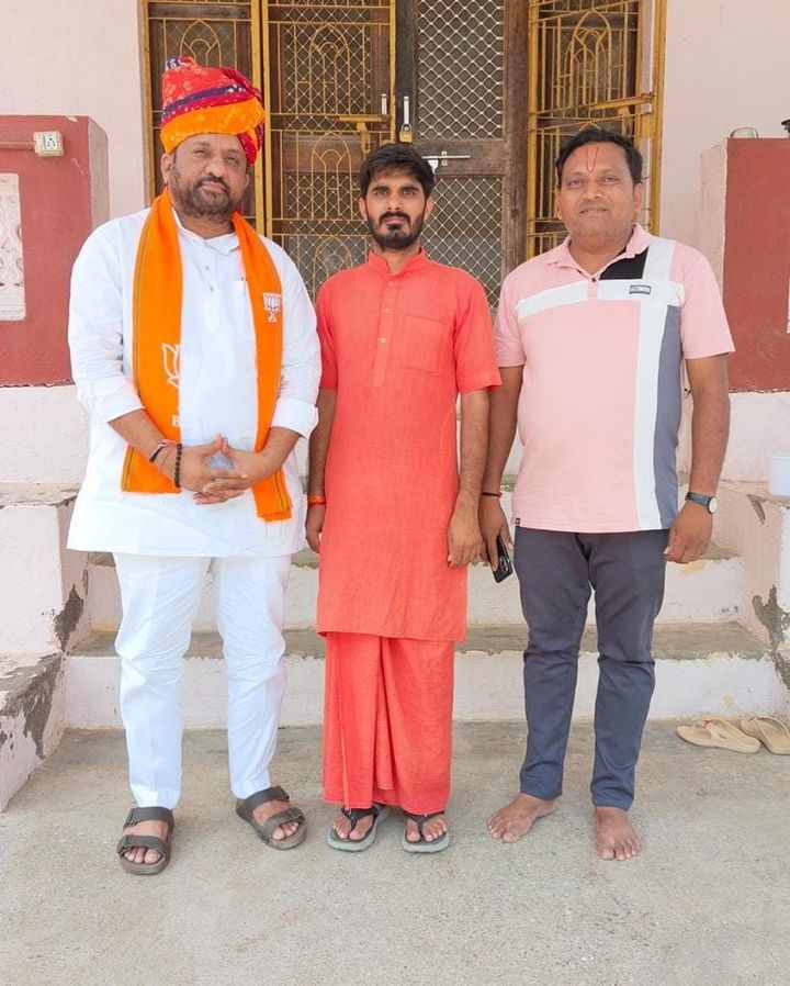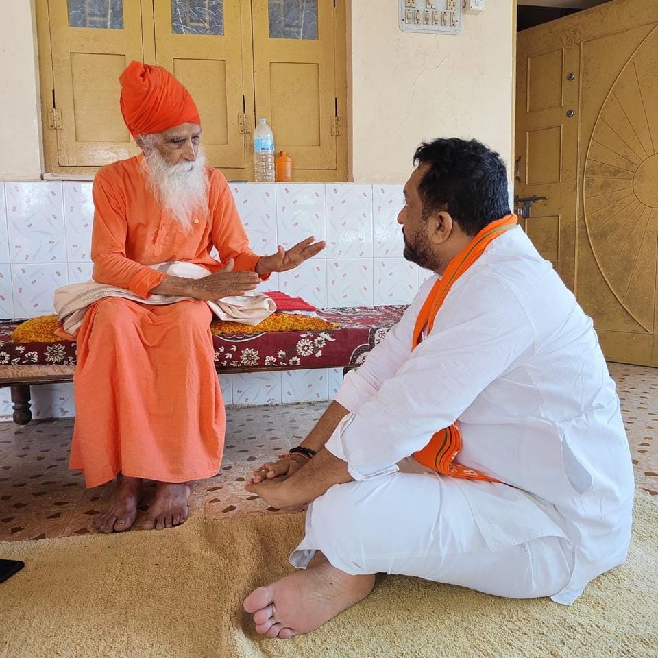 ર્તવ્યનિષ્ઠ અને જનસેવામાં સદૈવ સમર્પિત આદરણીય પ્રધાનમંત્રી શ્રી Narendra Modi જીને દેશસેવામાં 9 વર્ષ પૂર્ણ થવા પર આજ જુનાગઢ તાલુકાનાં વડાલ નજીક આવેલ બિશનોઈ આશ્રમ ખાતે સંત શ્રી ગણેશ દાસ ગુરુ શ્રી ભાગીરથ દાશ આચાર્ય સાથે મુલાકાત કરી આશીર્વાદ મેળવ્યા એ વેળાએ જન સેવામાં સદૈવ કાર્યરત પ્રધાનમંત્રી શ્રીના લોક સેવાના કાર્યોને યાદ કર્યા હતા.