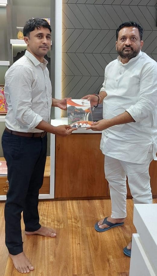 ગૌરવવંતા ગુજરાતના પનોતા પુત્ર અને દેશના વડાપ્રધાન શ્રી નરેન્દ્રભાઈ મોદી સાહેબના નેતૃત્વ હેઠળ કેન્દ્રમાં ભાજપની સરકારમાં સેવા, સુશાસન અને ગરીબ કલ્યાણના 9 વર્ષની ઉજવણી અંતર્ગત આજરોજ મારી ઓફિસ “ક્રિષ્ના આર્કેડ” ખાતે “સમન્વય મલ્ટી સ્પેશિયાલિટી હોસ્પિટલ” ના કેન્સર સ્પેશિયાલિસ્ટ ડો. ઉદય જલું સાથે મુલાકાત કરી સરકારશ્રી દ્વારા લોક કલ્યાણ અર્થે કરાયેલી નવ વર્ષની સિદ્ધિઓની પુસ્તિકા અર્પણ કરી.