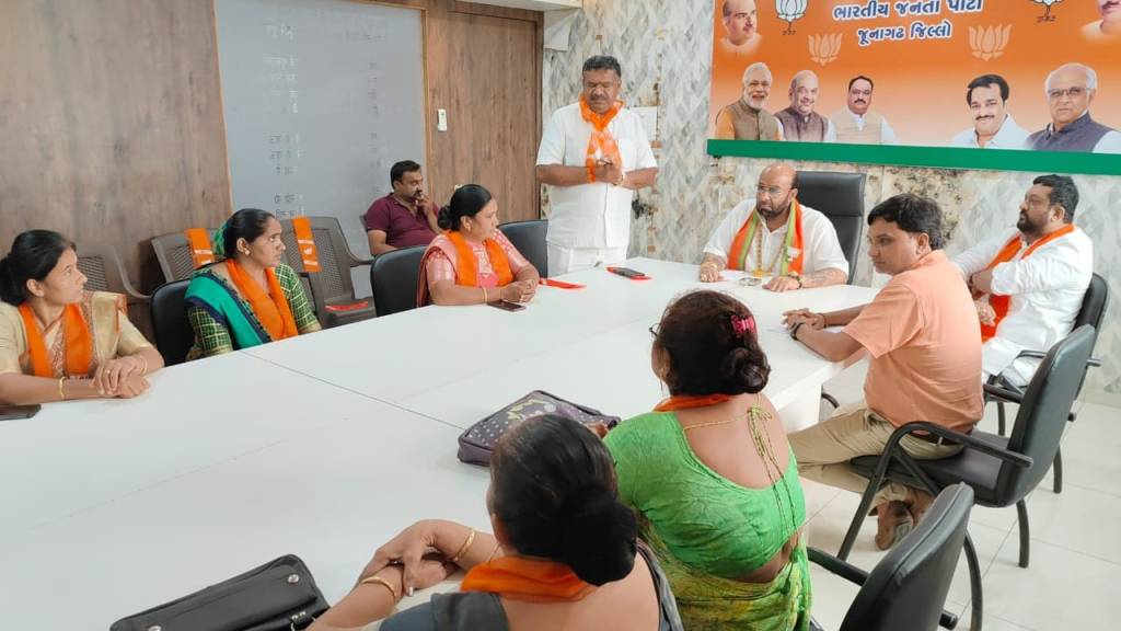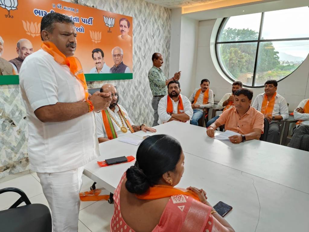 Posted in Uncategorized જૂનાગઢ જિલ્લા ભારતીય જનતા પાર્ટી કાર્યાલય “પંડિત દિન દયાલ ભવન” ખાતે જુનાગઢ જિલ્લા પંચાયતના આગામી અઢી વર્ષ માટે પ્રમુખ – ઉપપ્રમુખ ની ચૂંટણી સંદર્ભે પ્રદેશ તરફથી મહાનગરના ડે.મેયર ગીરીશભાઈ કોટેચા ની હાજરીમાં સદસ્ય શ્રીઓને વ્હીપ આપવામાં આવેલ જેમાં પ્રમુખ તરીકે હરેશભાઈ ઠૂંમર, ઉપપ્રમુખ તરીકે મુકેશભાઈ કણસાગરા, કારોબારી ચેરમેન દિલીપભાઈ સિસોદિયા અને પક્ષના નેતા તરીકે લાભુબેન ગુજરાતીના નામો જાહેર થતાં પુષ્પગુચ્છ આપી શુભેચ્છાઓ પાઠવી. Posted on September 15, 2023 by Kirit Patel Share this: Share on WhatsApp (Opens in new window) WhatsApp Share on X (Opens in new window) X Share on Facebook (Opens in new window) Facebook Share on LinkedIn (Opens in new window) LinkedIn