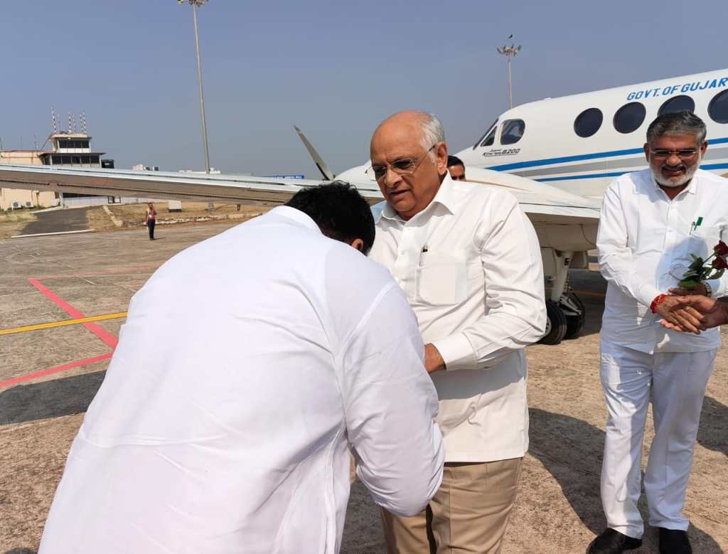 આજરોજ ગીર સોમનાથ ખાતે કાર્યક્રમ અંતર્ગત પધારતા ગુજરાતના મુખ્યમંત્રી શ્રી ભુપેન્દ્રભાઈ પટેલ અને કેબિનેટ મંત્રી શ્રી મુળુભાઈ બેરા અને પ્રદેશ પ્રમુખશ્રી સી આર પાટીલ સાહેબ નું કેશોદ એરપોર્ટ ખાતે પુષ્પગુચ્છ આપી ઉષ્માભેર સ્વાગત કર્યું.