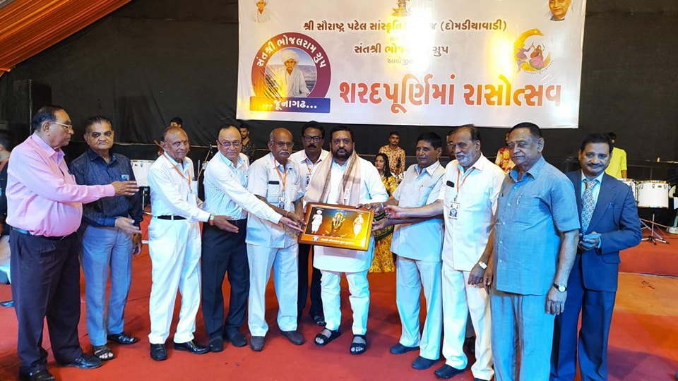 આજરોજ જુનાગઢ ખાતે શ્રી સૌરાષ્ટ્ર પટેલ સાંસ્કૃતિક સમાજ દોમડીયા વાડી સંચાલિત સંત શ્રી ભોજલરામ ગ્રુપ આયોજિત શરદપૂર્ણિમા રાસોત્સવ કાર્યક્રમમાં સમાજના આગેવાનો સાથે ઉપસ્થિત રહેલ.
