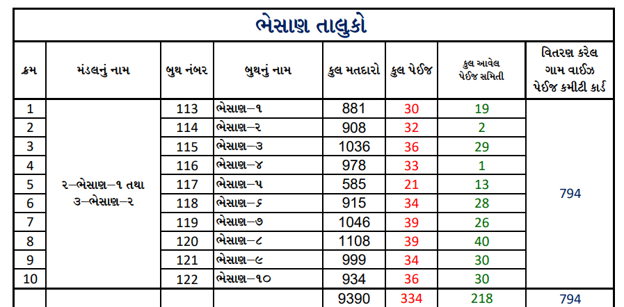 | બુથ નુ નામ | પેઇજ કમીટી | મતદાર યાદી | વોટ્સએપ ગ્રુપ ની લિંક | ગ્રુપ મા સભ્યો | એડમીન નં. |