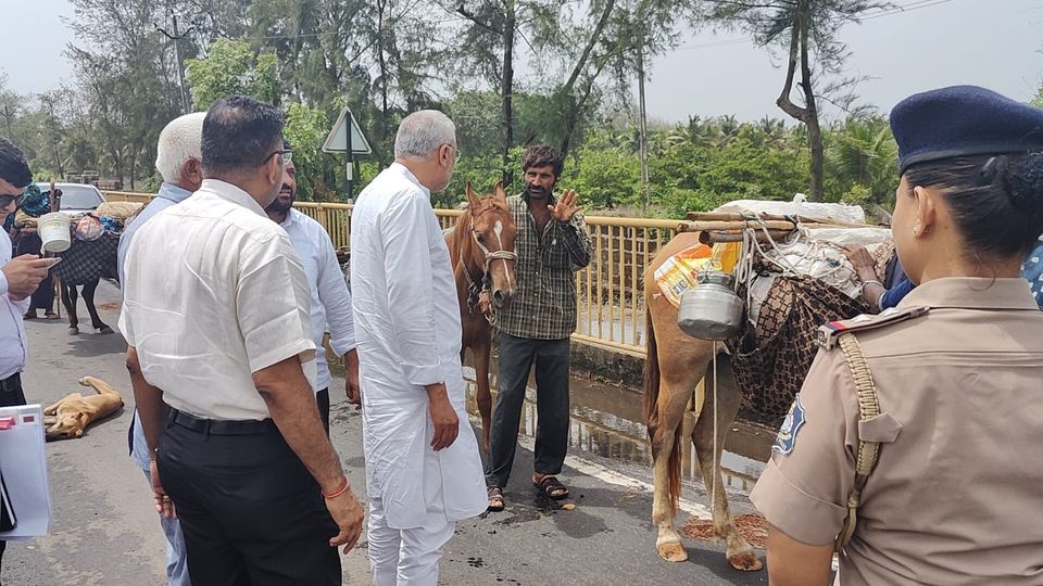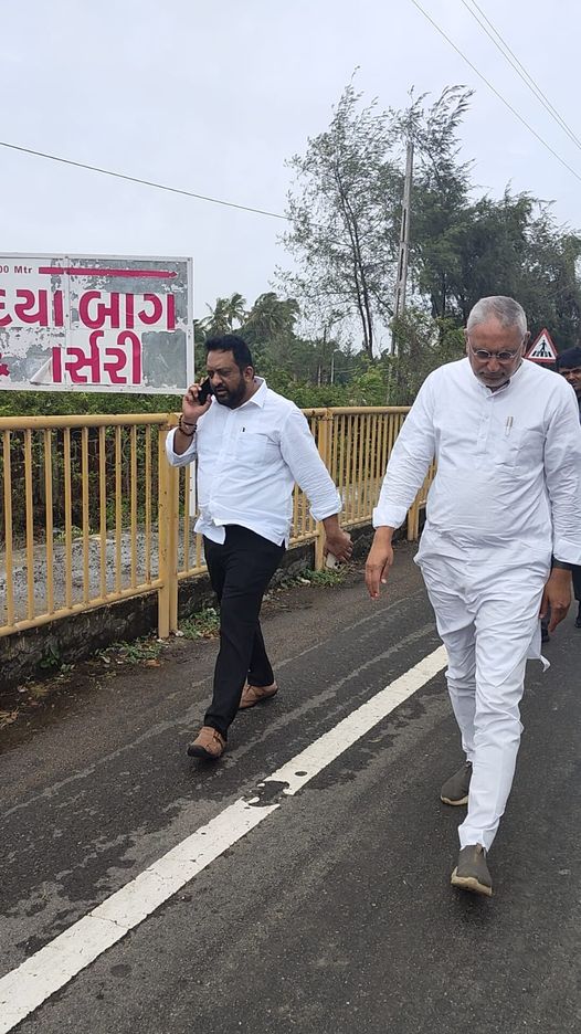 બિપોરજોય સાયકલોનની સંભવિત પરિસ્થિતિને ધ્યાને લેતા જૂનાગઢ જિલ્લાના સંભવીત દરિયાકાંઠાના વિસ્તારમાં મુલાકાતે જતા રાજ્ય મંત્રી જગદીશ પંચાલ (વિશ્વકર્મા) સાથે માંગરોળ શીલ રોડપરથી પગ પાળા સ્થળાંતર કરી રહેલ માલધારી સાથે માંગરોળ ખાતે રસ્તા પર મુલાકાત કરી રહેવા જમવા અંગેની વ્યવસ્થા કરવા સંલગ્ન અધિકારીઓને સૂચના આપી.