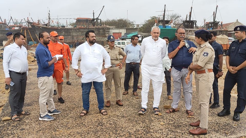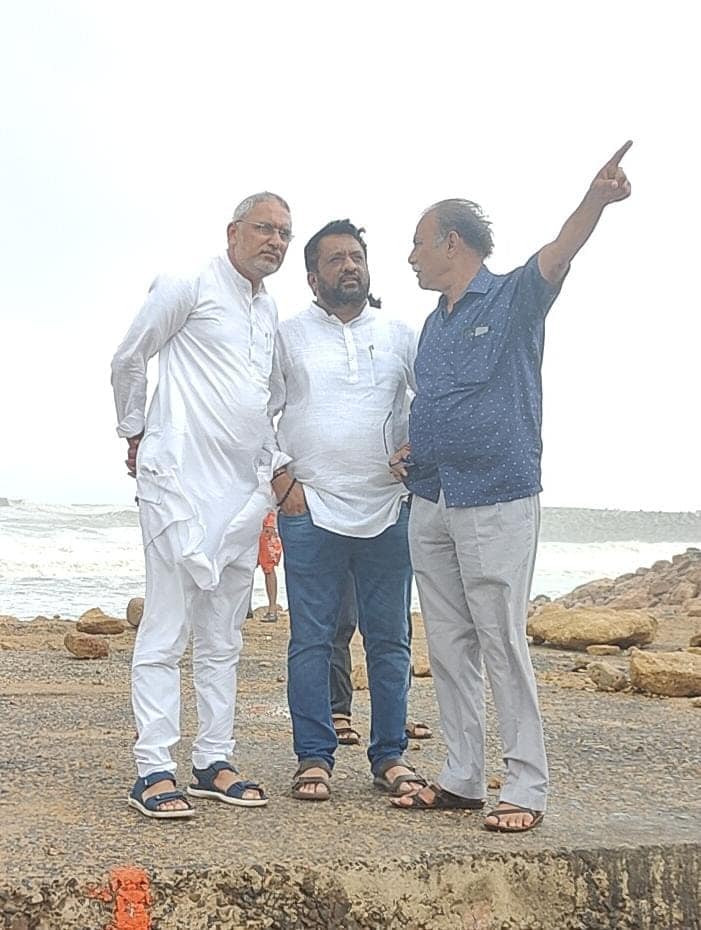 સંભવીત બિપરજોય વાવાઝોડાને ઘ્યાને લઈ આજરોજ માંગરોળ “બંદર” ખાતે રાજ્ય મંત્રી શ્રી જગદીશ પાંચાલ (વિશ્ર્વકર્મા) ની ઉપસ્થિતિમાં માંગરોળ દરીયા કિનારે “જેટી” અને “દીવા દાંડી” ખાતે ઓલ ઇન્ડિયા માછીમાર સમાજના પ્રમુખશ્રી વેલજીભાઈ મસાણી, ધારાસભ્યો સાથે હાજર રહી સ્થળ મુલાકાત કરી દરિયા કિનારે તેનાદ કરેલ NDRF ની ટીમ ને મળીને પરિસ્થિતિનો તાગ મેળવી જરુરી સૂચન કરેલ.