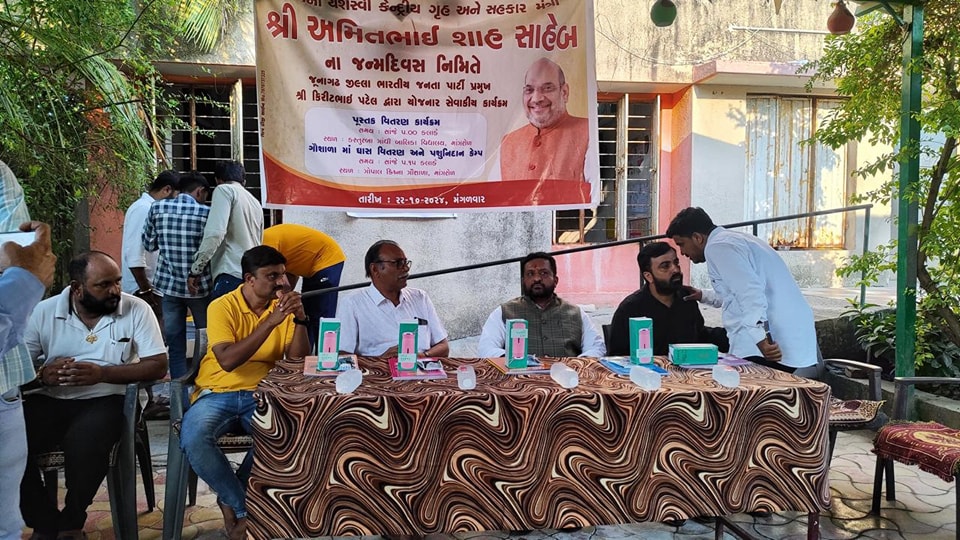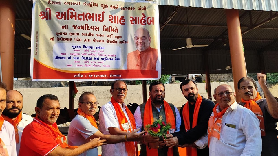 દેશના માનનીય કેન્દ્રીય ગૃહ અને સહકારી મંત્રી શ્રી અમિતભાઈ શાહ સાહેબના જન્મદિવસ નિમિત્તે માંગરોળ સ્થિત ગોપાલ ક્રિષ્ના ગૌશાળા ખાતે ગાયોને નીરણ ખવડાવી ગૌદાન કરેલ અને સાથે પશુ નિદાન કેમ્પ માં ઉપસ્થિત રહેલ…