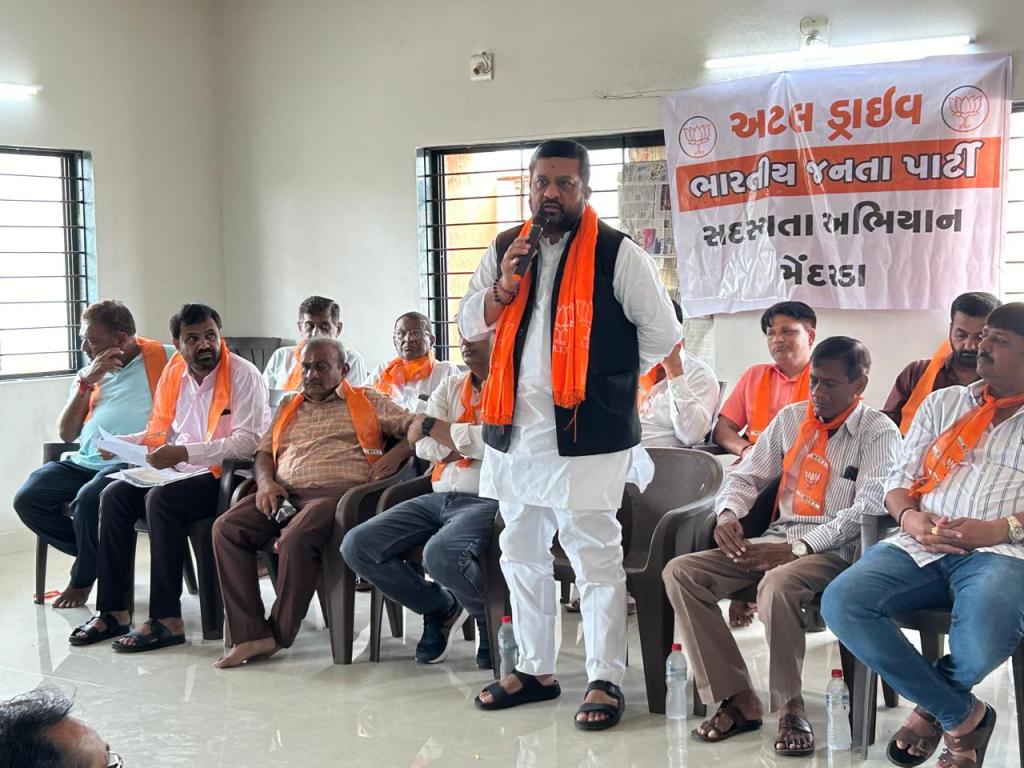 આજરોજ મેંદરડા ખાતે સદસ્યતા અભિયાન અંતર્ગત મેંદરડા તાલુકા ભાજપ ની બેઠક મળેલ જેમા ઉપસ્થિત રહી આ કાર્યક્રમ ને વધુ વેગ આપી શિર્ષનેત્રુત્વ દ્વારા અપાયેલ લક્ષ્યાંક ને વહેલી તકે પુર્ણ કરવા સુચના આપેલ. અને આ સદસ્યતા અભિયાન અંગે જરુરી માર્ગદર્શન આપેલ.