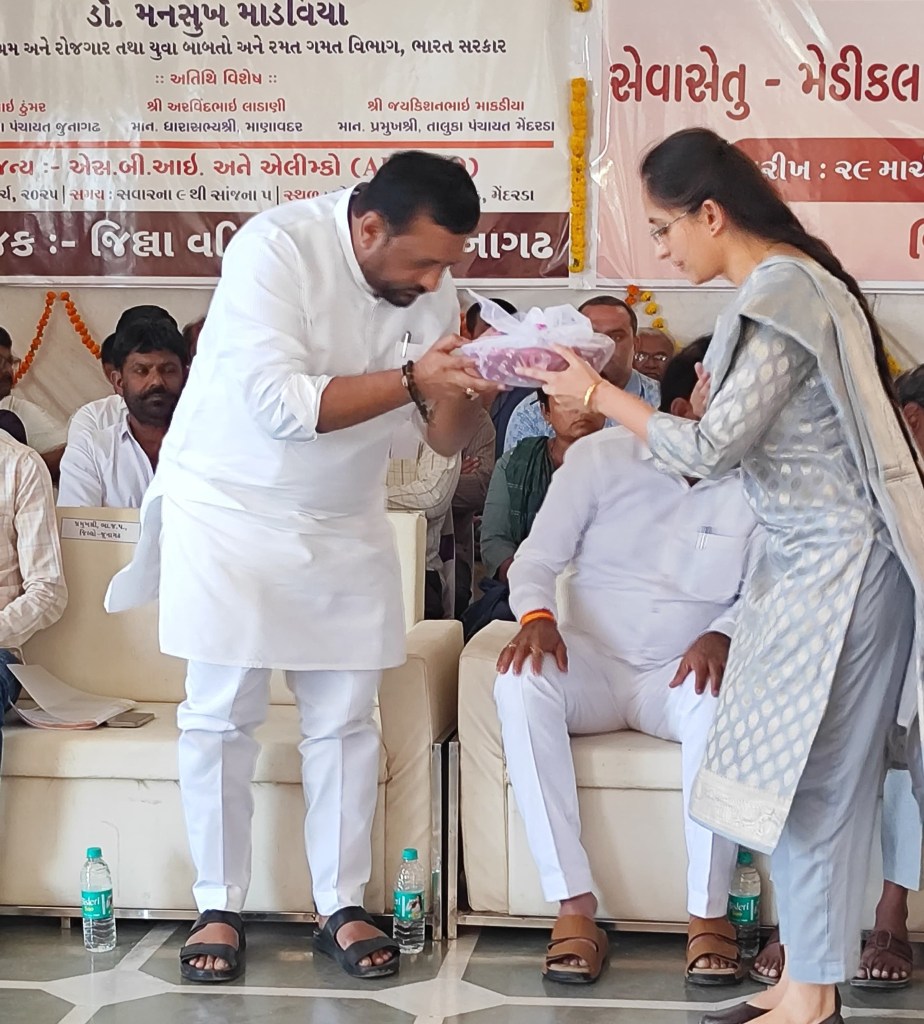 આજરોજ મેંદરડા ખાતે ” સેવા સેતુ ” કાર્યક્રમ મા ભારત સરકારના શ્રમ અને રોજગાર મંત્રી શ્રી મનસુખભાઈ માંડવીયા સાહેબ સાથે ઉપસ્થિત રહેલ.