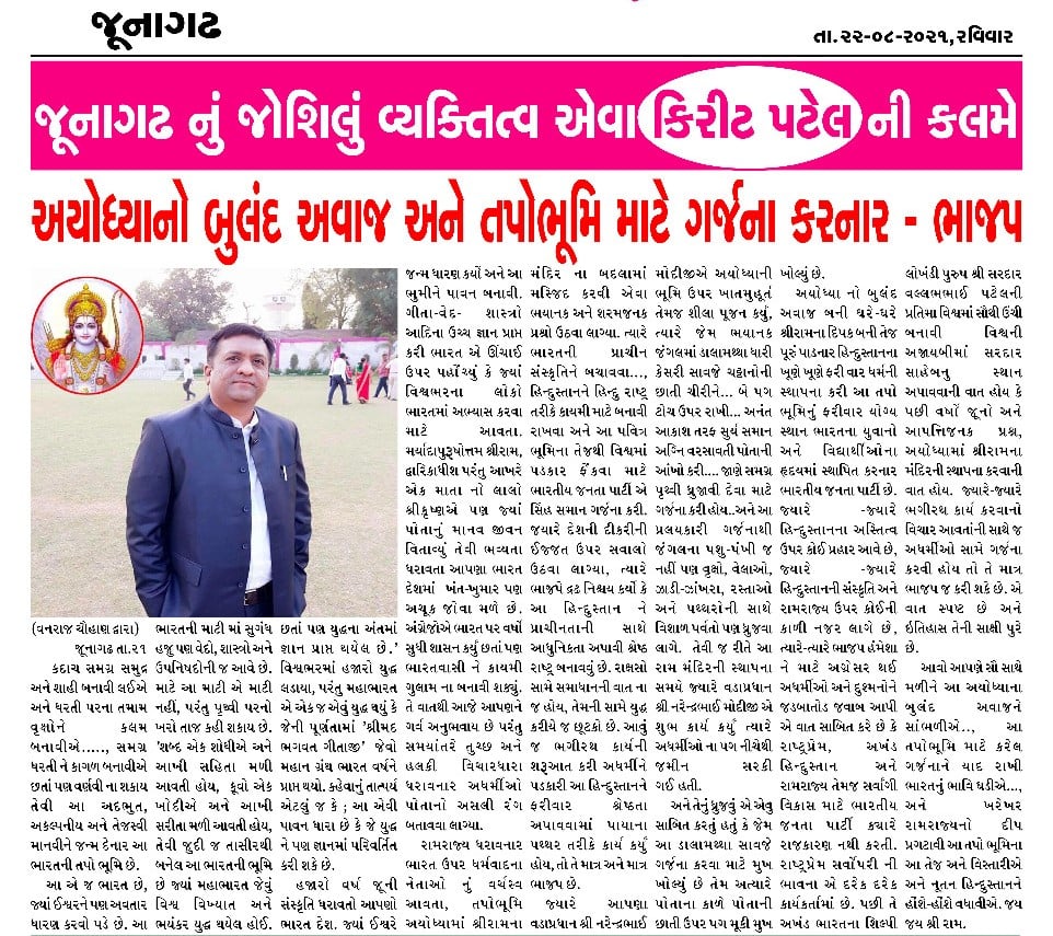 Posted in Press Coverage પ્રેસ કવરેજ. Posted on August 8, 2021September 16, 2021 by Kirit Patel Share this: Share on WhatsApp (Opens in new window) WhatsApp Share on X (Opens in new window) X Share on Facebook (Opens in new window) Facebook Share on LinkedIn (Opens in new window) LinkedIn