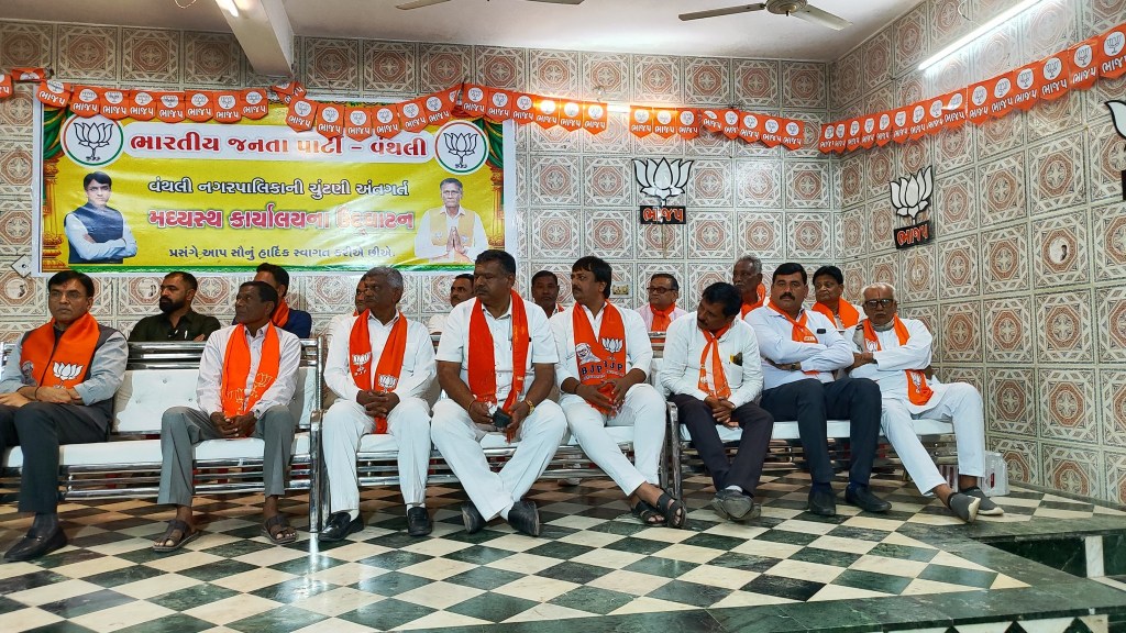 આજરોજ વંથલી ખાતે સદસ્યતા અભિયાન અંતર્ગત જિલ્લા સંગઠન પ્રભારી શ્રી દિલીપભાઇ પટેલની ઉપસ્થિતિમા વંથલી તાલુકા અને શહેર ભાજપ ની બેઠક મળેલ જેમા ઉપસ્થિત રહી આ કાર્યક્રમ ને વધુ વેગ આપી શિર્ષનેત્રુત્વ દ્વારા અપાયેલ લક્ષ્યાંક ને વહેલી તકે પુર્ણ કરવા સુચના આપેલ. અને આ સદસ્યતા અભિયાન અંગે જરુરી માર્ગદર્શન આપેલ.